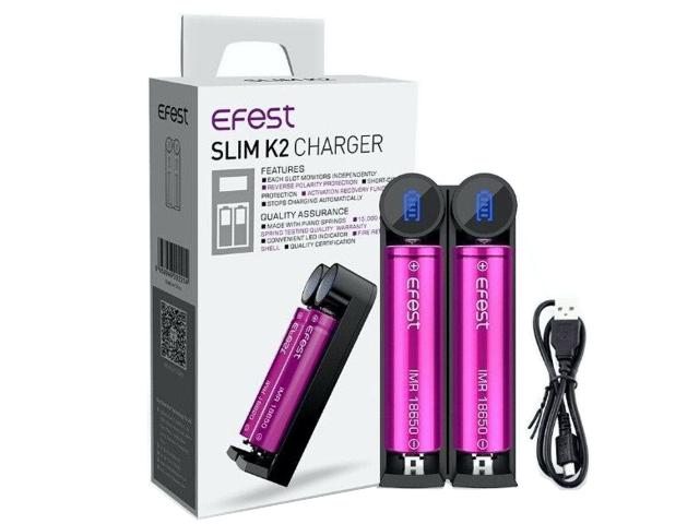 Ο φορτιστής EFEST SLIM K2 φορτίζει δύο μπαταρίες, είναι υψηλής ποιότητας και μικρού μεγέθους. Διαθέτει Micro Usb 1A. Από την οθόνη Led μπορείτε να ενημερωθείτε για το πότε φορτίζει η μπαταρία και για το πότε είναι έτοιμη.