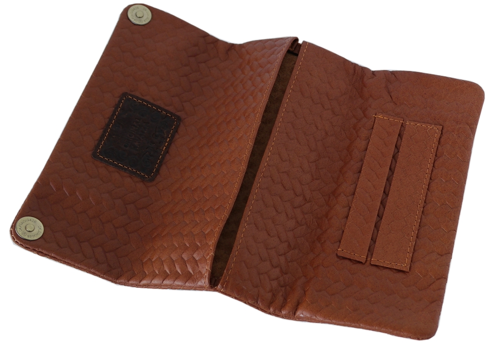 Η δερμάτινη καπνοθήκη ORIGINAL KAVATZA TP21 WOVEN TABBA είναι  κατασκευασμένη από γνήσιο δέρμα με σχέδιο καφέ ψάθας και απευθύνεται σε καπνιστές στριφτού οι οποίοι προτιμούν να τοποθετούν το σακουλάκι καπνού μέσα στην καπνοθήκη.